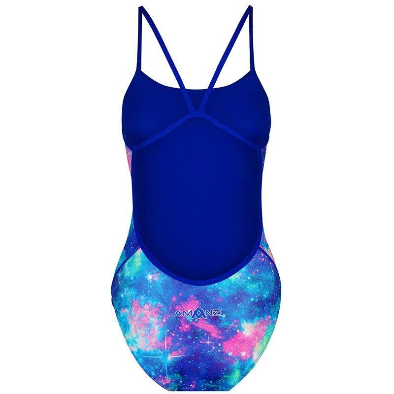 The Astra Proback One Piece is an all purpose training swimsuit engineered to fit the needs of both competitive and active swimmers. The thin shoulder straps are designed to reduce the weight placed on the neck and shoulder muscles and allow for maximum freedom and ease of movement whilst swimming. The wide open back follows the natural contours of the body providing an ergonomic fit and superior comfort. The medium cut leg is suitable for all figures. (AM10304F)