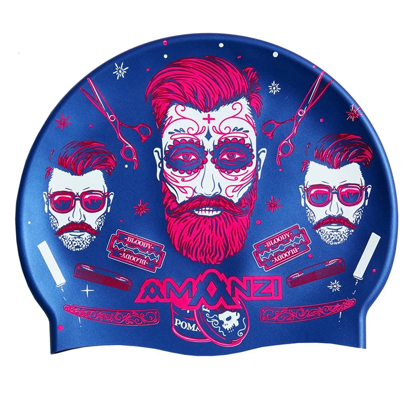 Hey, bad boy! Are you on the hunt for a cool style? You’re going to flip for the AMANZI Barber Chop Silicone Swim Cap. These bold jammers feature a hip barber style print in bold shades of cherry red and cream. With pomade, a comb, razor, and a bearded barber, this swim cap has everything that you need to look smokin’ hot!