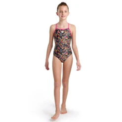 This girls costume is created from Arena’s ‘Max Life’ fabric which is designed to last much longer than standard lycra swimwear. With a fun and exciting pattern all over the costume your daughter will love her time in the water!