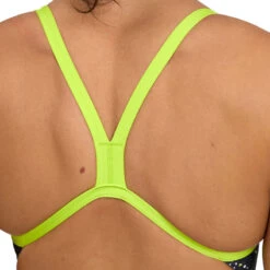 This eco-friendly version of arena’s MaxLife fabric contains at least 50% recycled polyester from PET bottles. Plus the production process was optimized to save energy, reduce CO2 emissions and minimize water usage. The open back, thin straps and high-cut leg provide maximum freedom of movement, excellent feel of the water and reduced drag.
