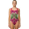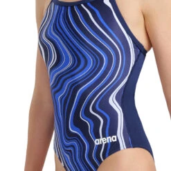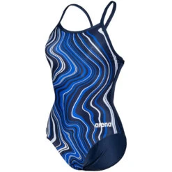 This marbled Light Drop suit features thin straps, full front lining, and a conservative back cutout for a comfortable feminine and sporty look with enhanced coverage and support where you need it most.