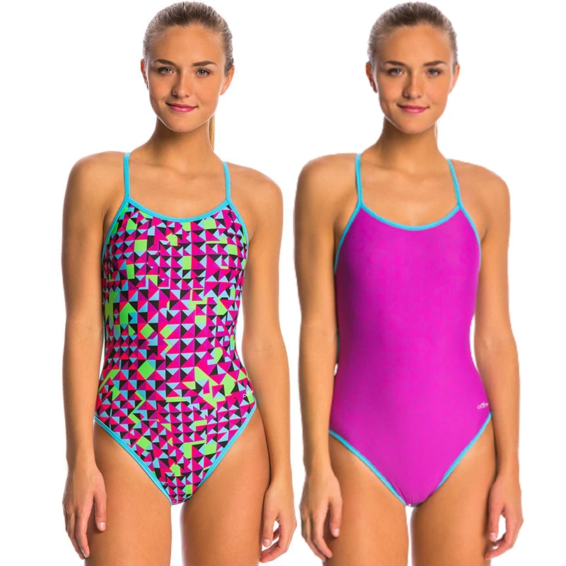 Print or solid? You decide! Whatever mood you’re in, this 2-for-1 suit will help you feel your very best while training. Our Nylon/Xtra Life Lycra® fabric provides the ultimate stretch and comfort while protecting against Chlorine, and our string back provides the needed support with minimal coverage.