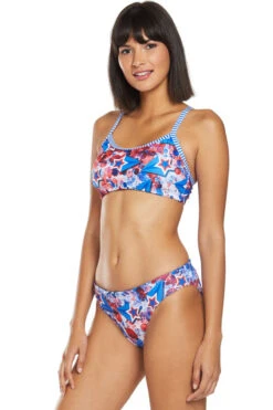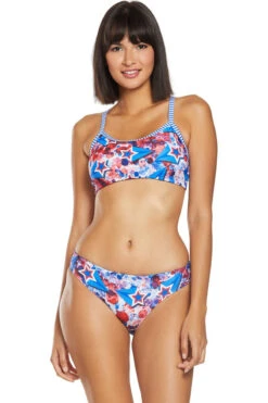 - Provides full coverage and durable keyhole silhouette with Uglies striped criss cross straps