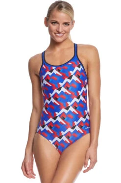 GREAT DETAILS: Style meets durability with this DBX-back suit in a red, white, and blue graphic print.