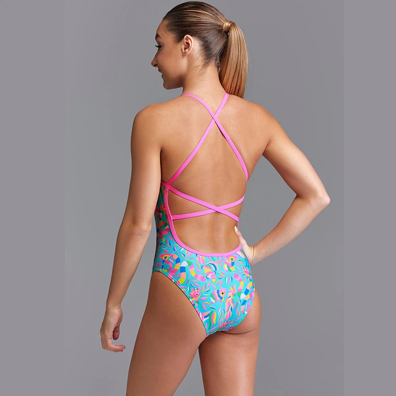 - You’ll be sure to get noticed on pool deck in our strappiest one piece yet!