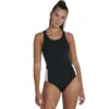 Featuring an open key hole, cross over single straps, a moderate leg height and full front lining to provide great support and comfort so you can swim fast and freely for hours. Available is sizes 8 – 16.
