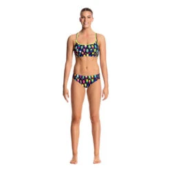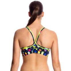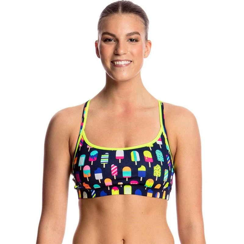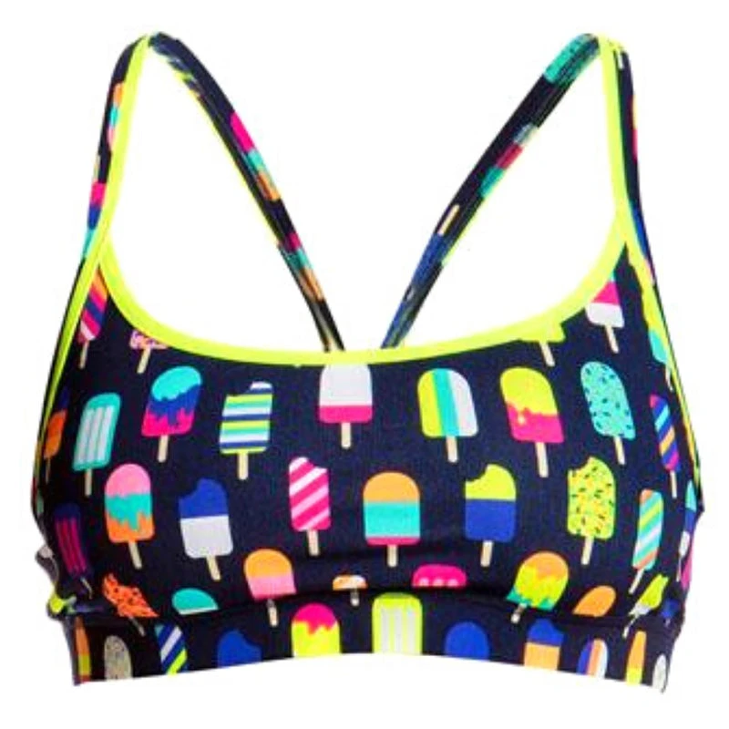 Firm fitting sports crop top with racer back and double strap bind finish with wide elastic for under bust support to give you the support you need in a sports top. Sold as separates.