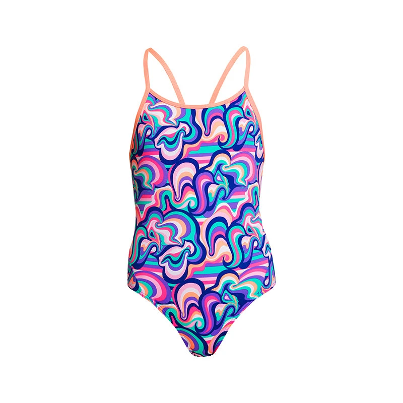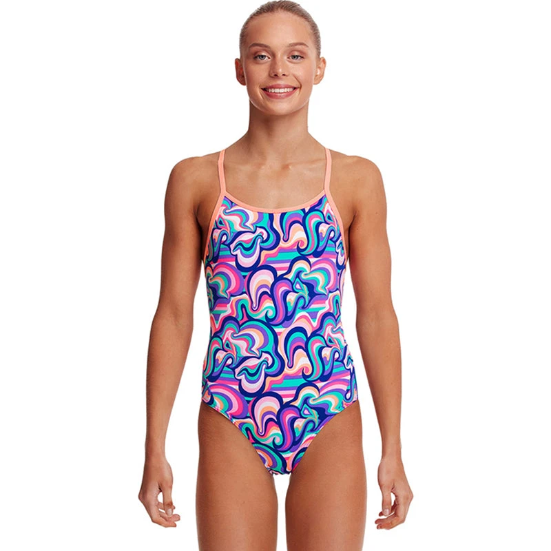 Our classic training style with signature diamond back strap finish and modest rear coverage is perfect for lap sessions. Features a circular cut-out back. With front lining and Funkita embroidery, this easy style says it all.