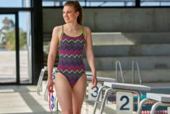 Made from our exclusive C-Infinity fabric, a 100% Italian polyester that is a colourful breakthrough in chlorine resistant fabric technology! The superior choice for swimmers, C-Infinity has exceptional strength and can retain its durability far beyond other elastane swimwear fabrics. Ideal for frequent pool use for recreational and performance based swimming.Â