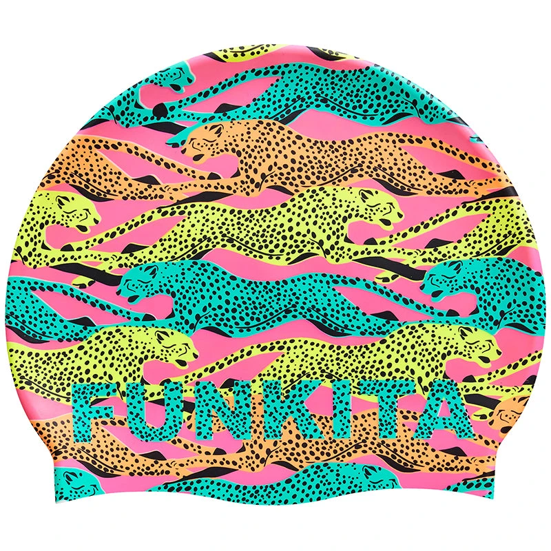 Comfortable and durable silicone swimming caps that are latex free.