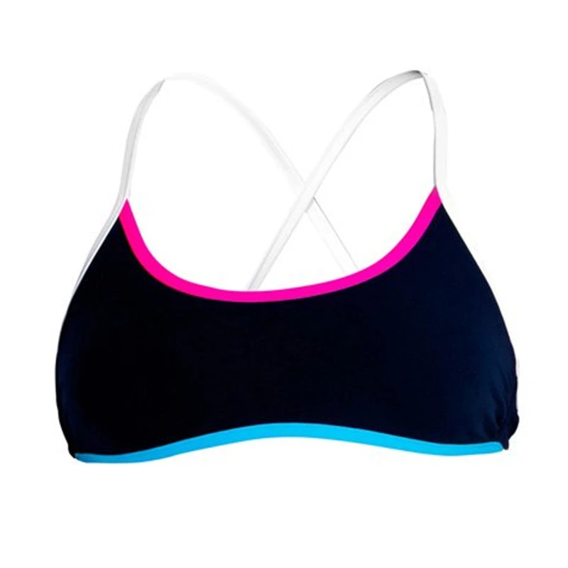 A stylish bikini top with adjustable single straps, crossing over at the back. Made with removable padding for additional comfort and support. Sold as separates.