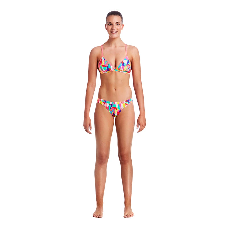 A moderate coverage brief with drawcord and single front lining makes it perfect for the beach and training. Sold as separates.
