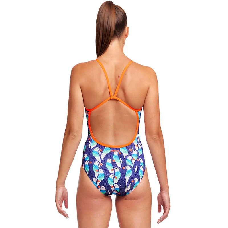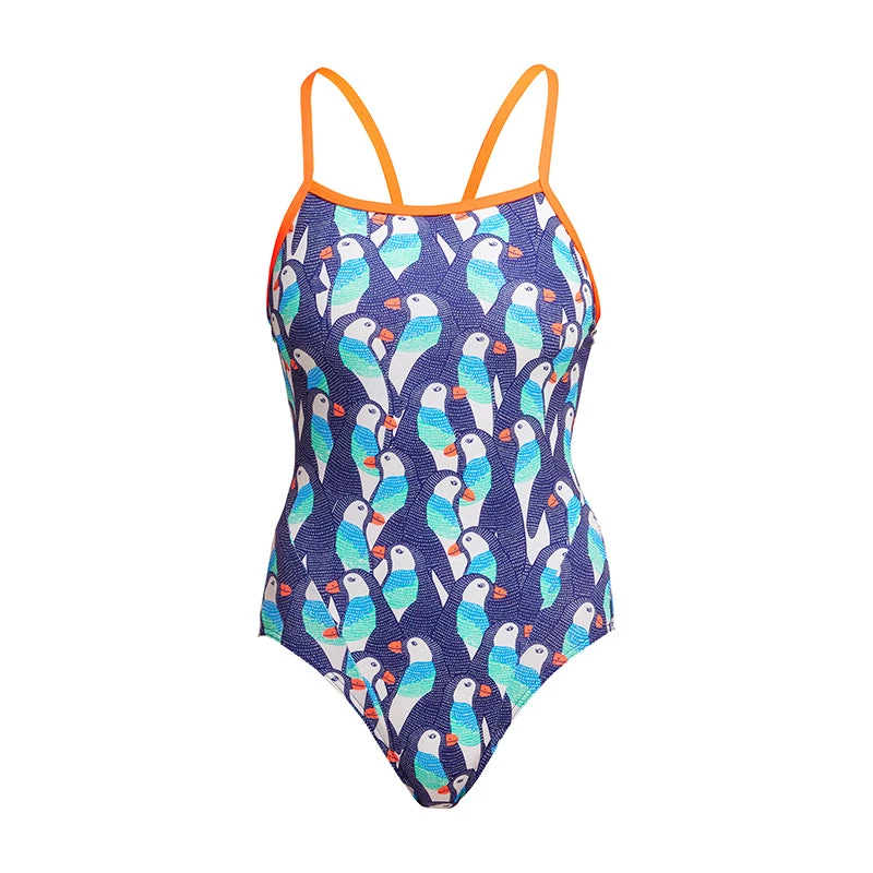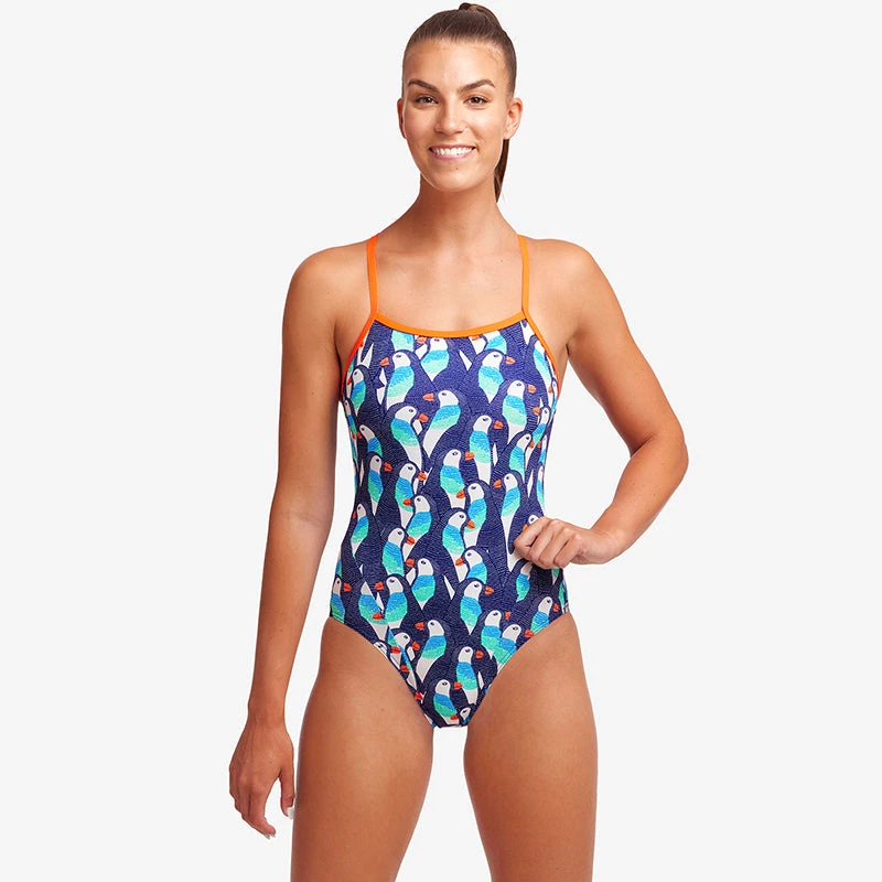 - My single bind finish will flatter your sporty shape and has been designed to sit comfortably on your shoulders away from your important working parts when you pull through the water.