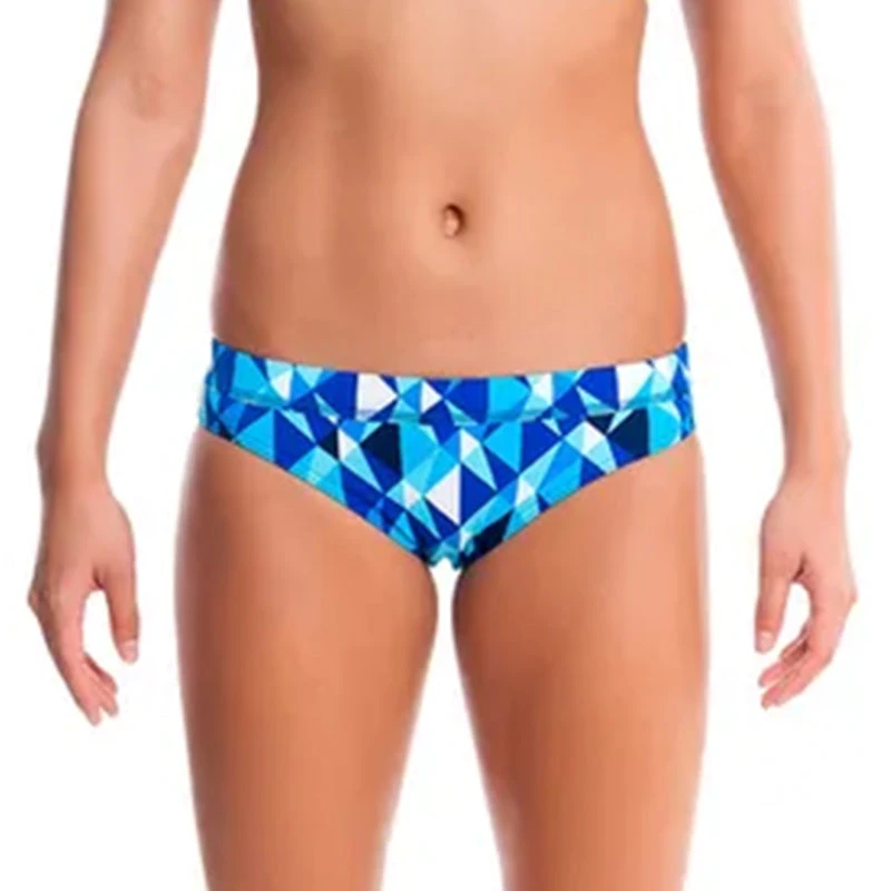 Hipster sports brief with drawcord and flat elastic waistband. Moderate leg rise and rear coverage. Sold as separates and available in sizes 8 – 14.