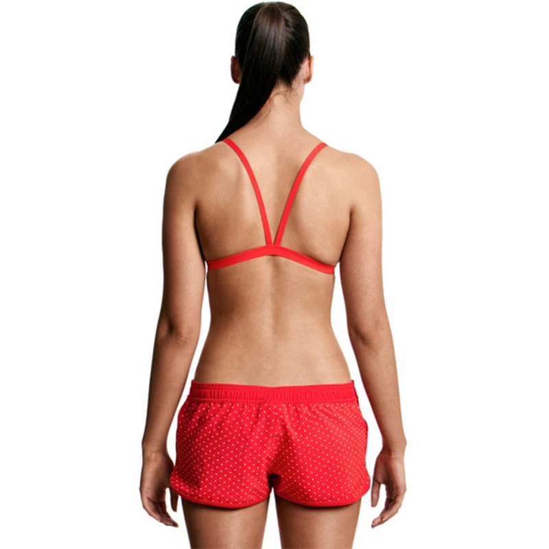 Loose fitting cropped pull-on beach short with shirred waist, side pockets and draw cord to fasten.