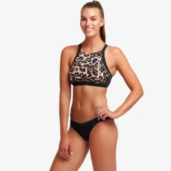 If you’re a D-E cup and love the extra coverage of a high neck bikini top with removable padding, then I’m your perfect swim top! C-Infinity is 100% chlorine resistant with brilliant colours and durability. Sold as separate.