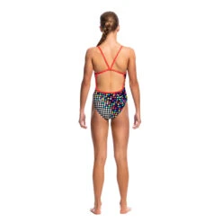 Freedom of movement and a narrower strap finish across the back sets this style apart from the rest. Features a scooped cut-out shape, logo embroidery and lining. Available in girls’ sizes 8 – 14.