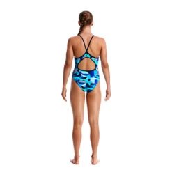 Our classic training style with signature diamond back strap finish and modest rear coverage is perfect for lap sessions. Features a circular cut-out back. With front lining and Funkita embroidery, this easy style says it all.
