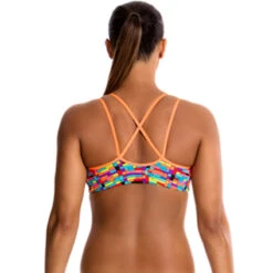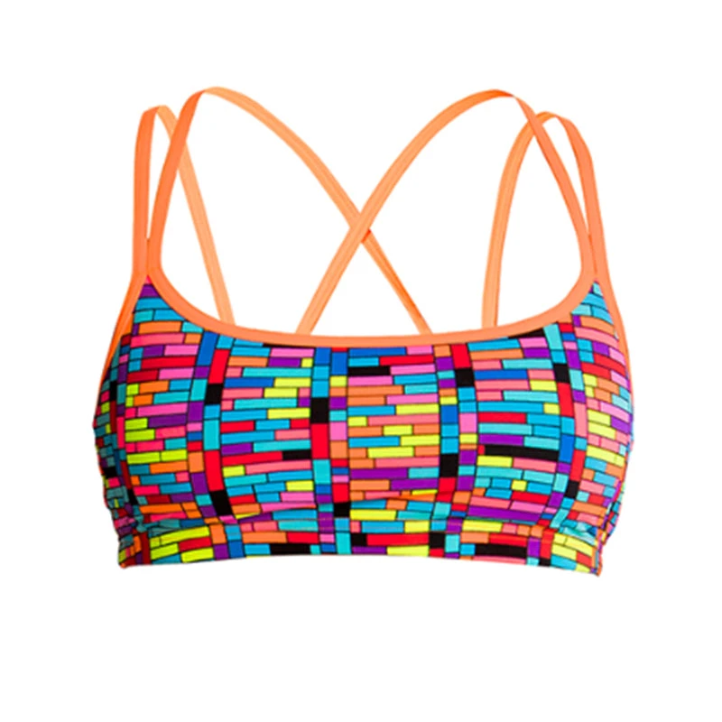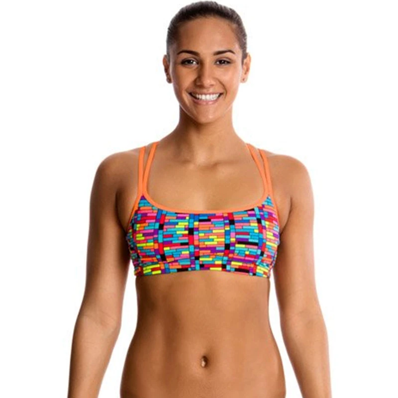 A double strap crossover back with flat underbust elastic that provides added comfort and support for hours in the pool. Sold as separates and available in sizes 8 – 14.