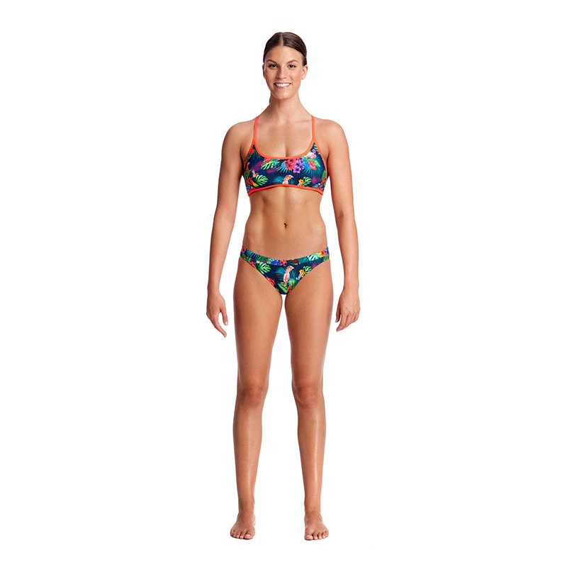A moderate coverage brief with drawcord and single front lining makes it perfect for the beach and training. Sold as separates.
