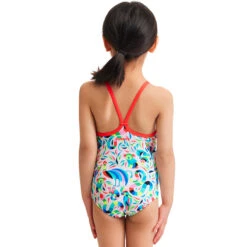I’m the most popular Funkita one piece for little swimmers offering a full back and low leg for complete coverage.