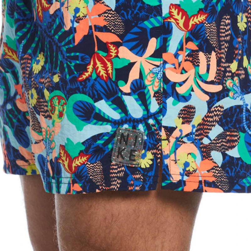Make an impression at the pool or the beach with these 5″ men’s swim shorts from Nike and their striking floral print. The eye-catching men’s swimming trunks are made with a durable plain weave fabric, using at least 75% recycled materials to help reduce waste sent to landfills. They’re equipped with several convenient pockets, each featuring mesh bags or grommets for efficient drainage when you step out of the water. A drawcord stretch waistband and full mesh lining help to make the men’s volley shorts a comfortable choice for all-day wear. (NESSC468)