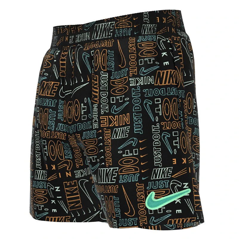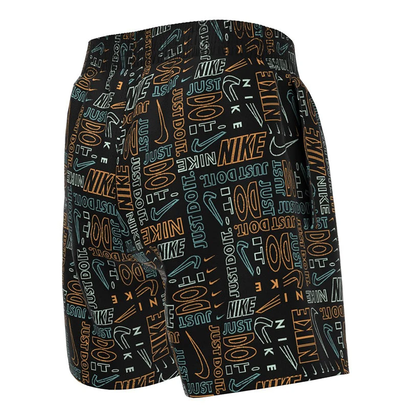 Cool and contemporary, the Boys’ Nike Swim Logo Mash-up Breaker 4″ Volley Short, is sure to make a splash. An eye-catching print helps these boys’ swim trunks to stand out while the lightweight polyester fabric ensures they feel as good as they look. They have a built-in mesh brief for a secure and supportive fit and a stretch waistband with internal drawcord for adjustable comfort. Side welt pockets with mesh bags for drainage allow for hands-free storage of small items. (NESSC792)