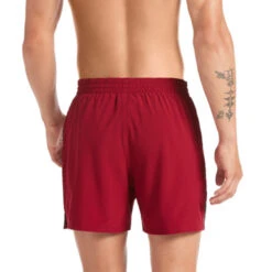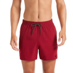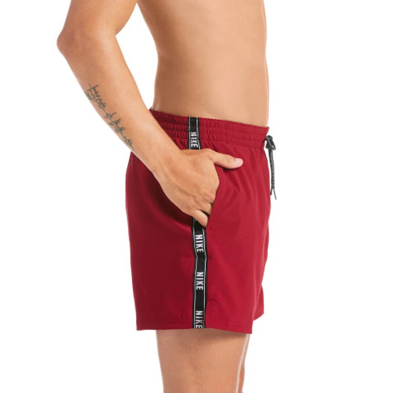 Nike Swim Men’s Logo Tape Racer 5″ Volley Short boasts a durable water repellent finish to help them stand up to regular wear better and dry faster. The swimming trunks have a built-in mesh brief and a stretch waistband for added comfort, while internal and external pockets provide convenient storage. Functional leg vents allow for enhanced air flow, while logo-patterned tape down the sides adds some contrast to the classic solid-colored design.