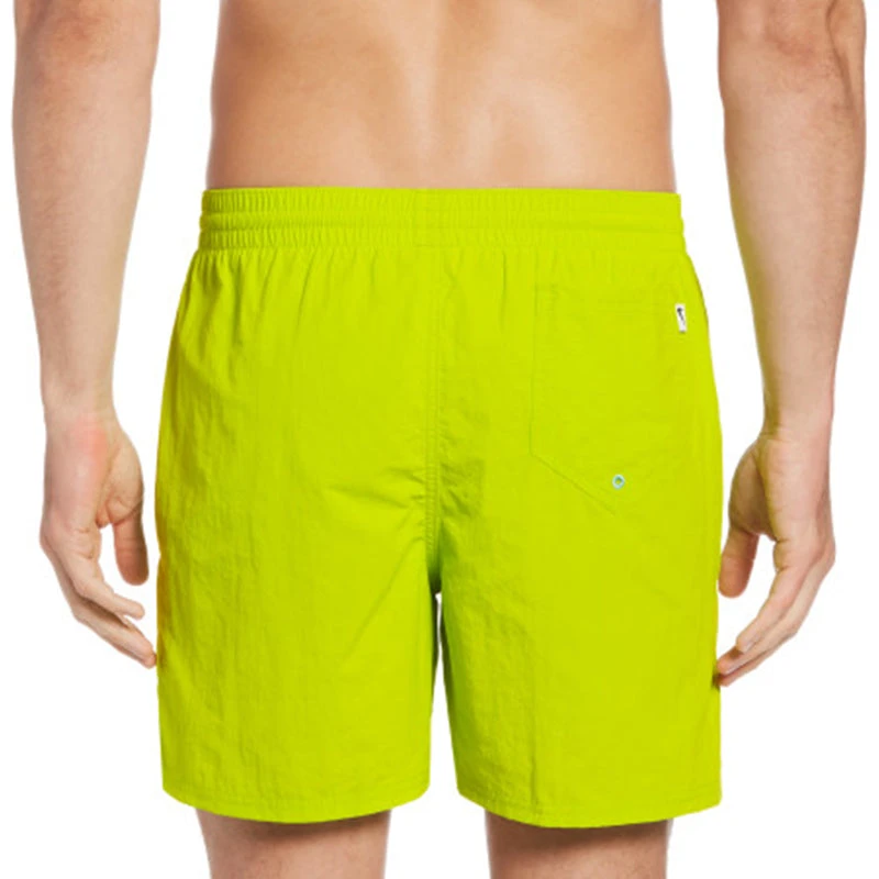 This Men’s Nike Swim Solid Icon 5″ Volley Short features a stretch waistband with exterior drawcord for customizable comfort. The swimming trunks, which are made with at least 75% recycled materials, are fully lined for an improved fit and feel. Side seam pockets with mesh pocket bags, a back patch pocket with grommet and an inner mesh media pocket efficiently drain water away and provide plenty of storage for small essentials. Comfortable and functional, they are sure to become a swimwear staple. (NESSB636)