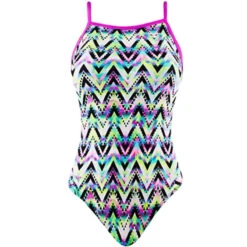 The Women’s Rave Funnies Wingback Swimsuit utilizes a sleek Poly/Spandex fabrication to provide performance in and out of the water.