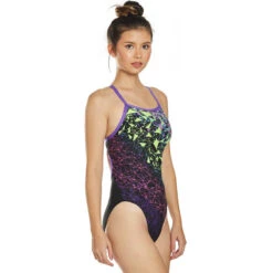 Constructed with TYR’s most durable textile, Durafast Elite – the DORI7A performance swimsuit utilizes high denier poly fiber and innovative circular knit construction to combine the strength and colorfastness of polyester with the comfort of spandex. Featuring a medium neckline, sleek/flexible straps, keyhole back, moderate cut leg and graphic print, the Diamondfit is ideal for athletes who want reliable coverage during every swim.
